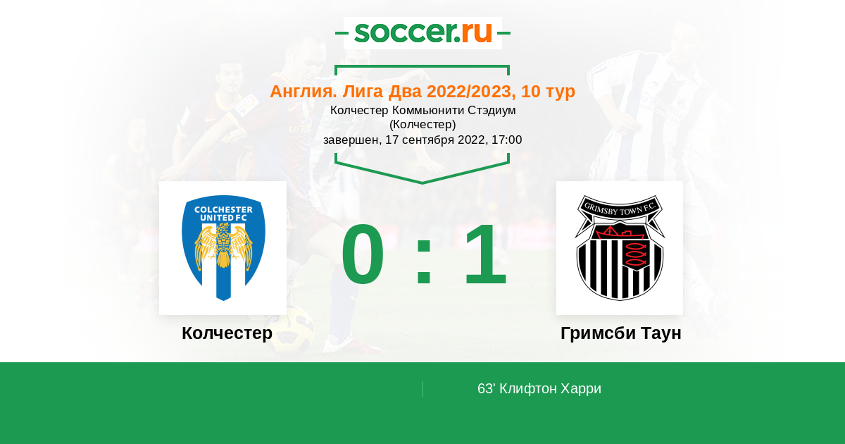 Протокол матча Колчестер против Гримсби Таун