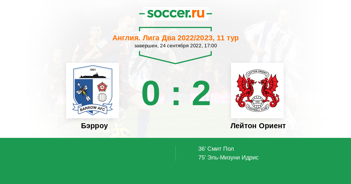 Протокол матча Бэрроу против Лейтон Ориент