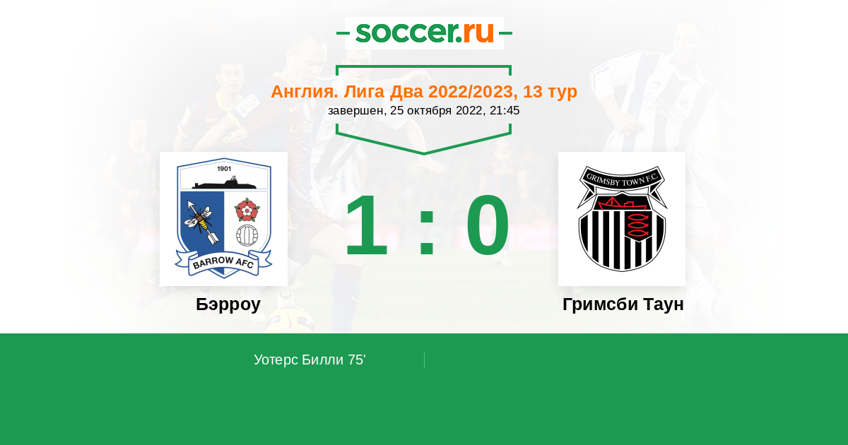 Протокол матча Бэрроу против Гримсби Таун