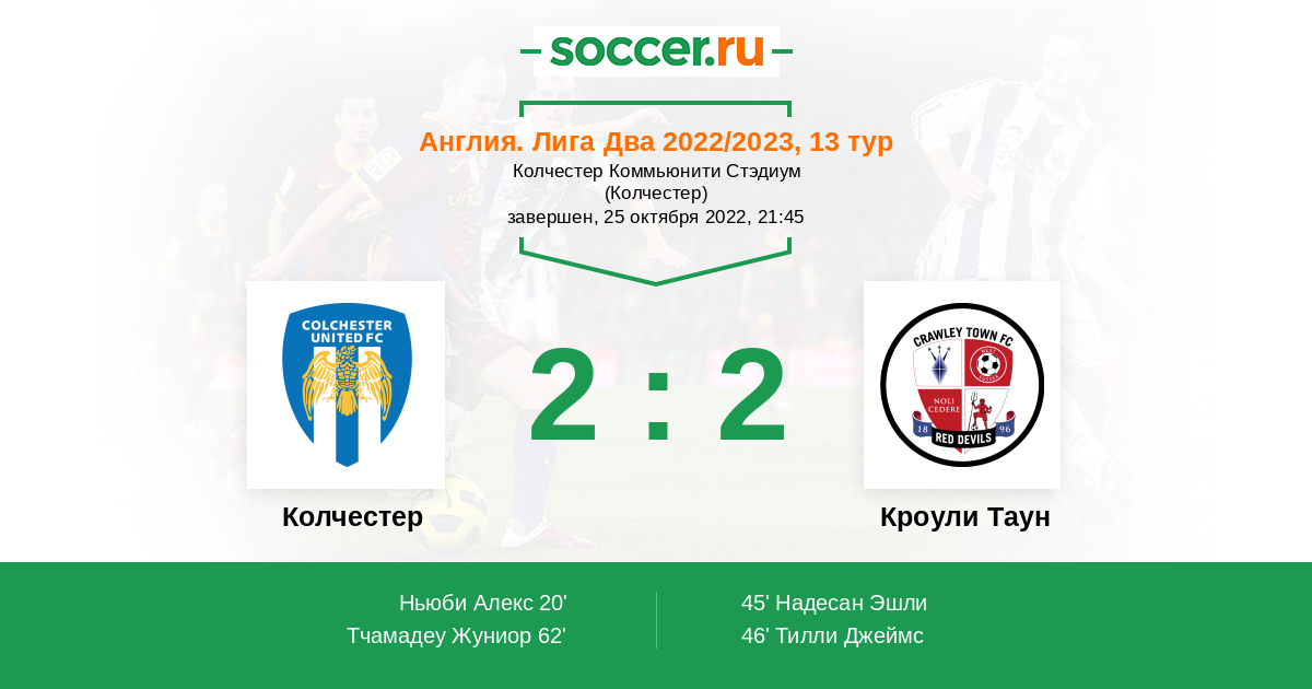 62' (2:2) Тчамадеу Жуниор (22) (Ньюби Алекс (19))