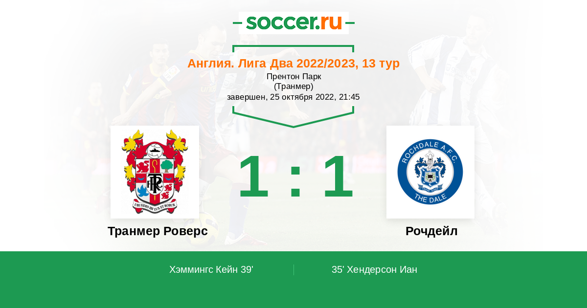 Протокол матча Транмер Роверс против Рочдейл
