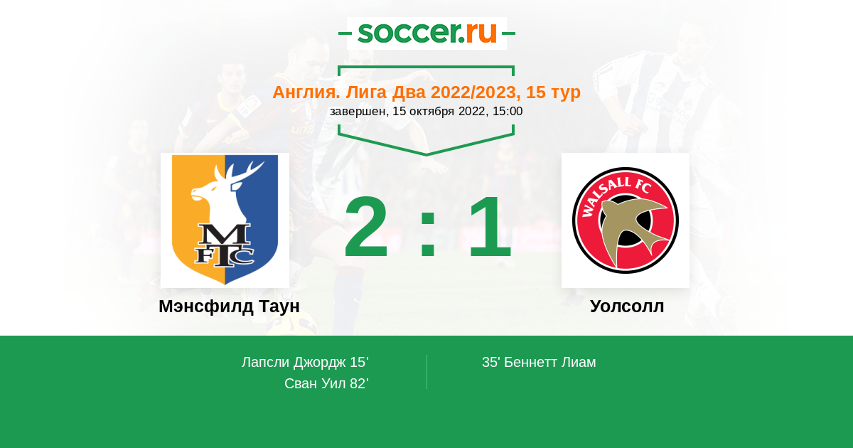 Протокол матча Мэнсфилд Таун против Уолсолл