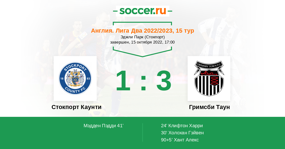 Протокол матча Стокпорт Каунти против Гримсби Таун