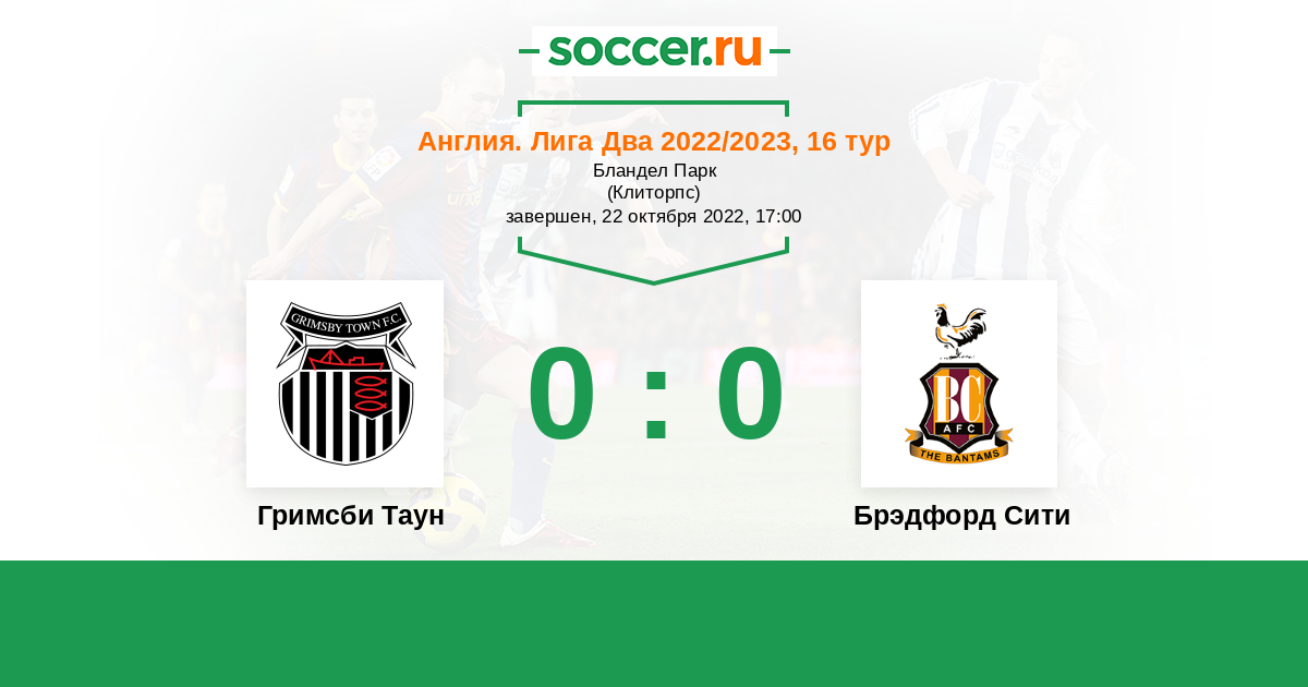 Протокол матча Гримсби Таун против Брэдфорд Сити