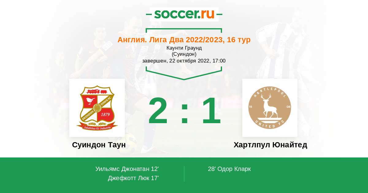 Протокол матча Суиндон Таун против Хартлпул Юнайтед