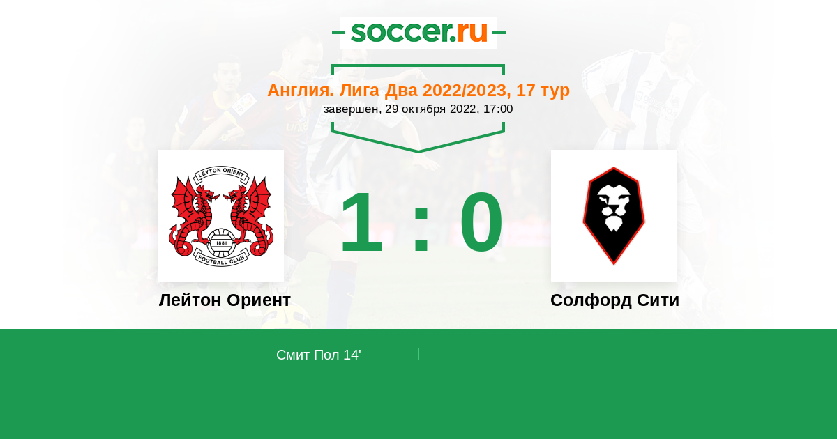 Протокол матча Лейтон Ориент против Солфорд Сити