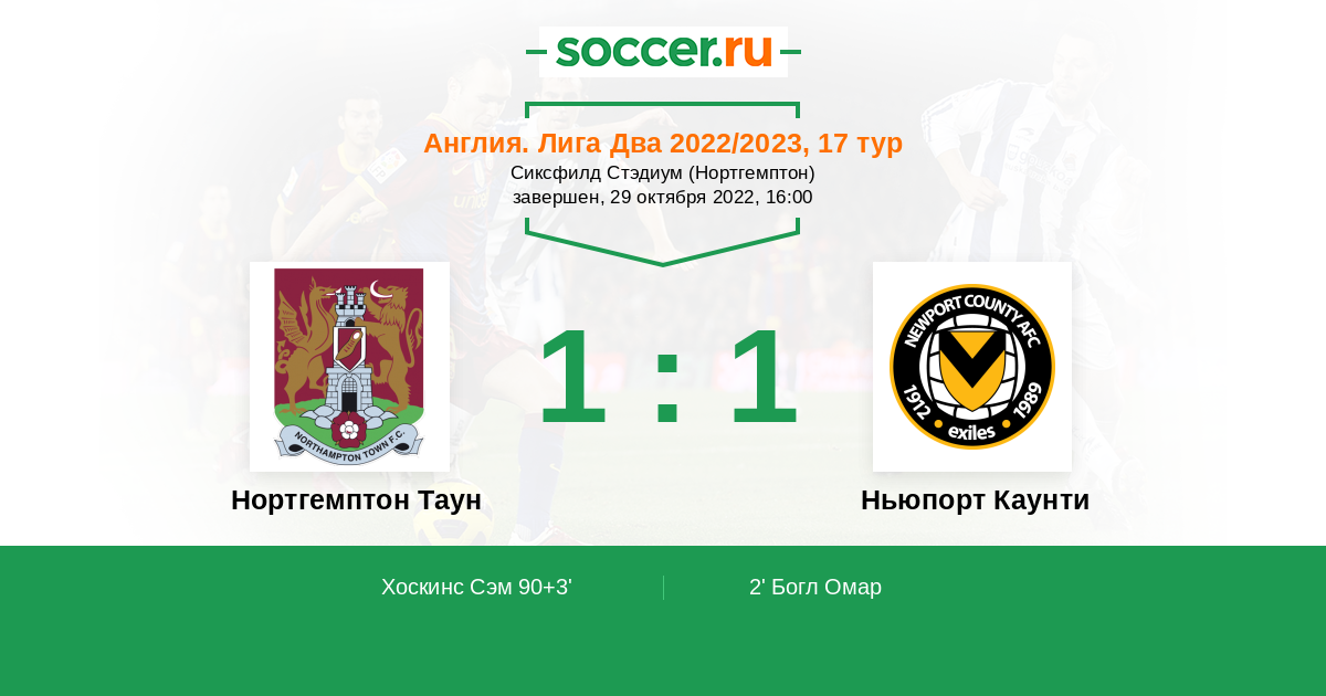 Протокол матча Нортгемптон Таун против Ньюпорт Каунти