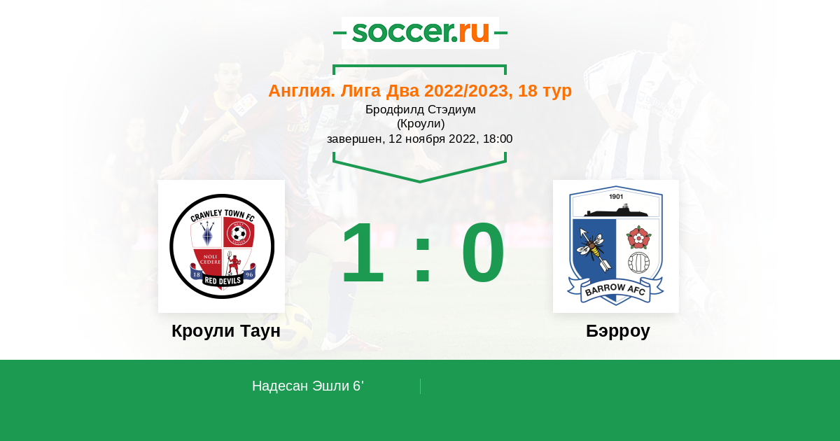 Протокол матча Кроули Таун против Бэрроу