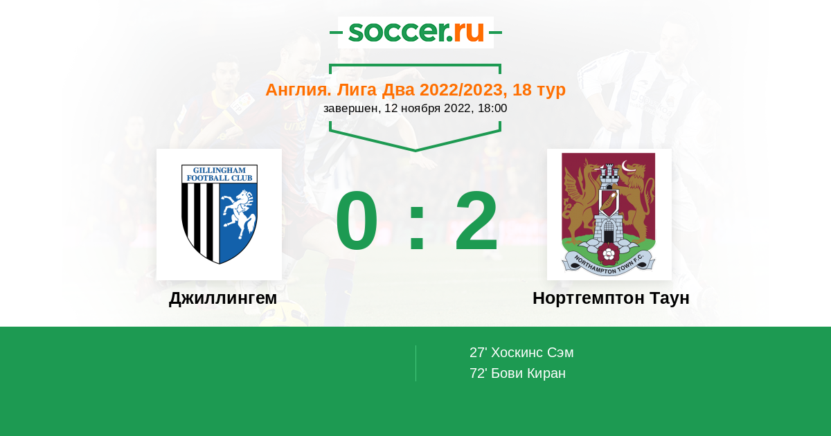 72' (0:2) Бови Киран (19) (Хоскинс Сэм (7))