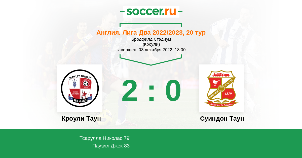 Протокол матча Кроули Таун против Суиндон Таун