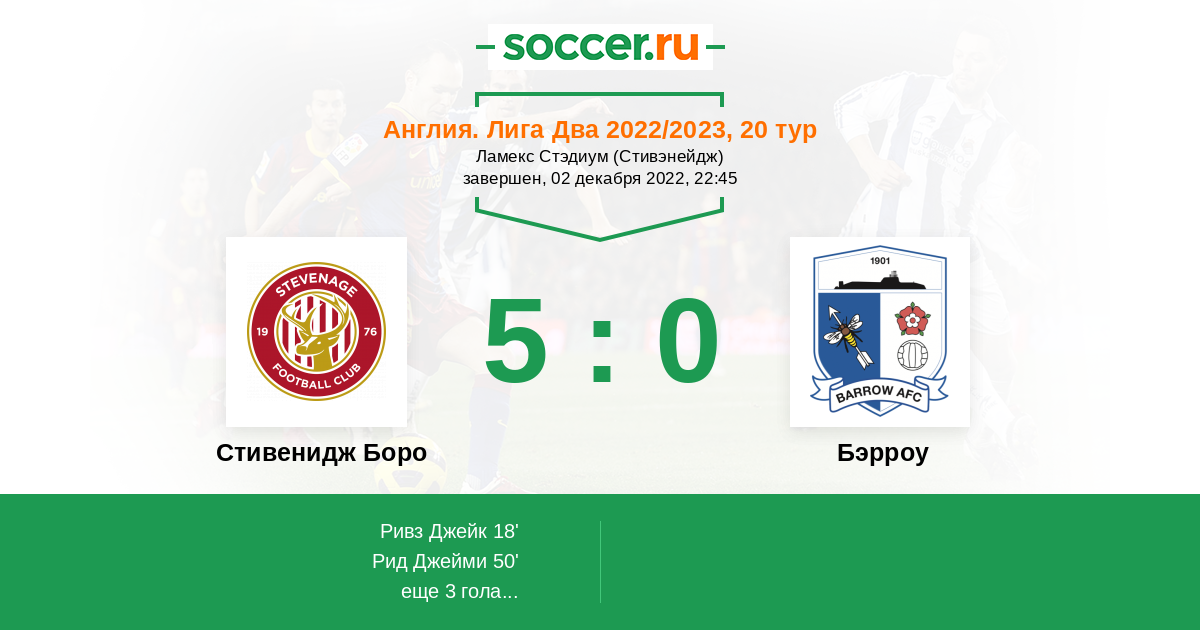 Протокол матча Стивенидж Боро против Бэрроу