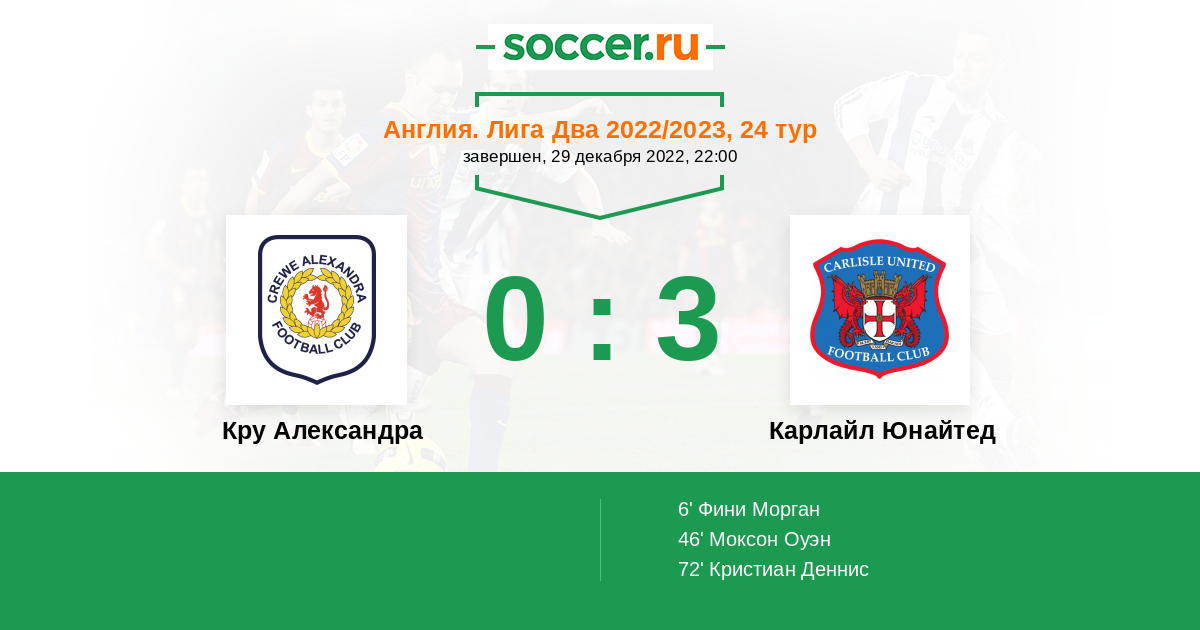 Протокол матча Кру Александра против Карлайл Юнайтед