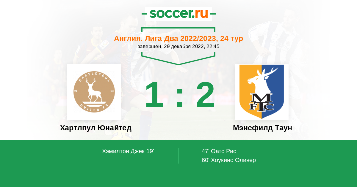 Протокол матча Хартлпул Юнайтед против Мэнсфилд Таун