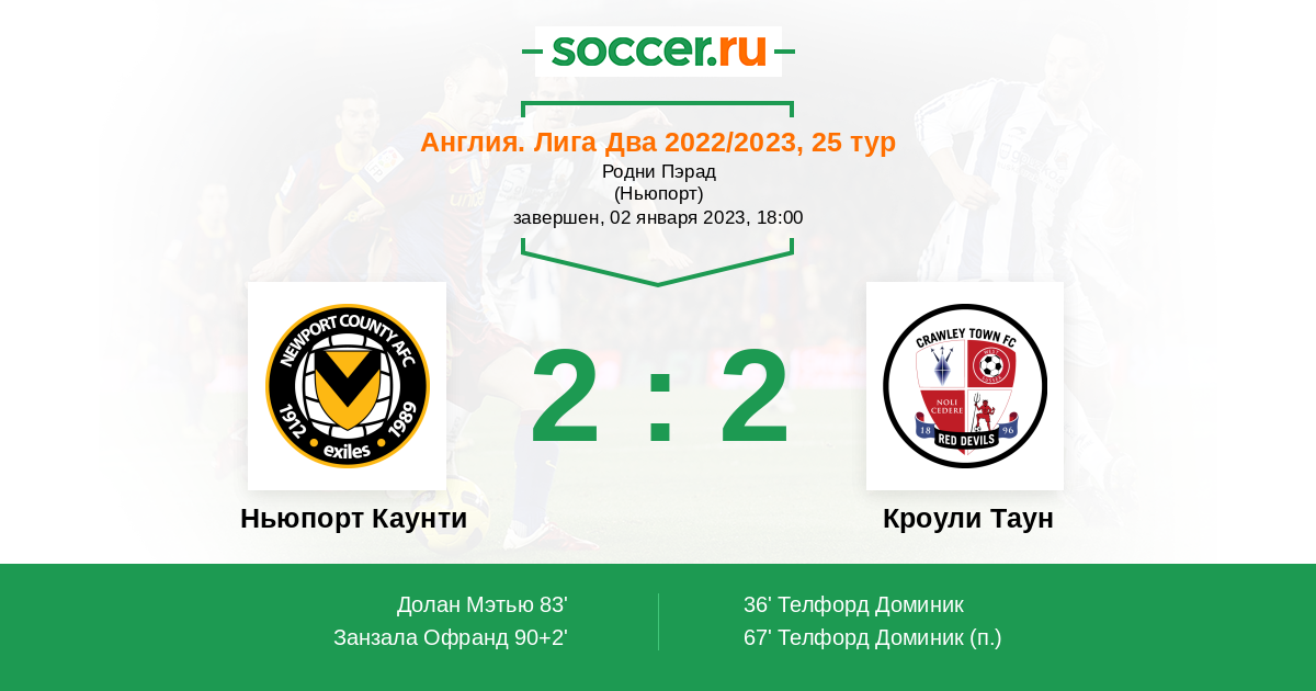 Протокол матча Ньюпорт Каунти против Кроули Таун