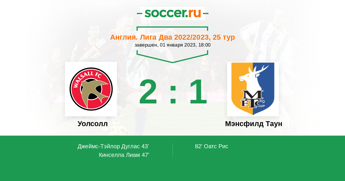 Протокол матча Уолсолл против Мэнсфилд Таун