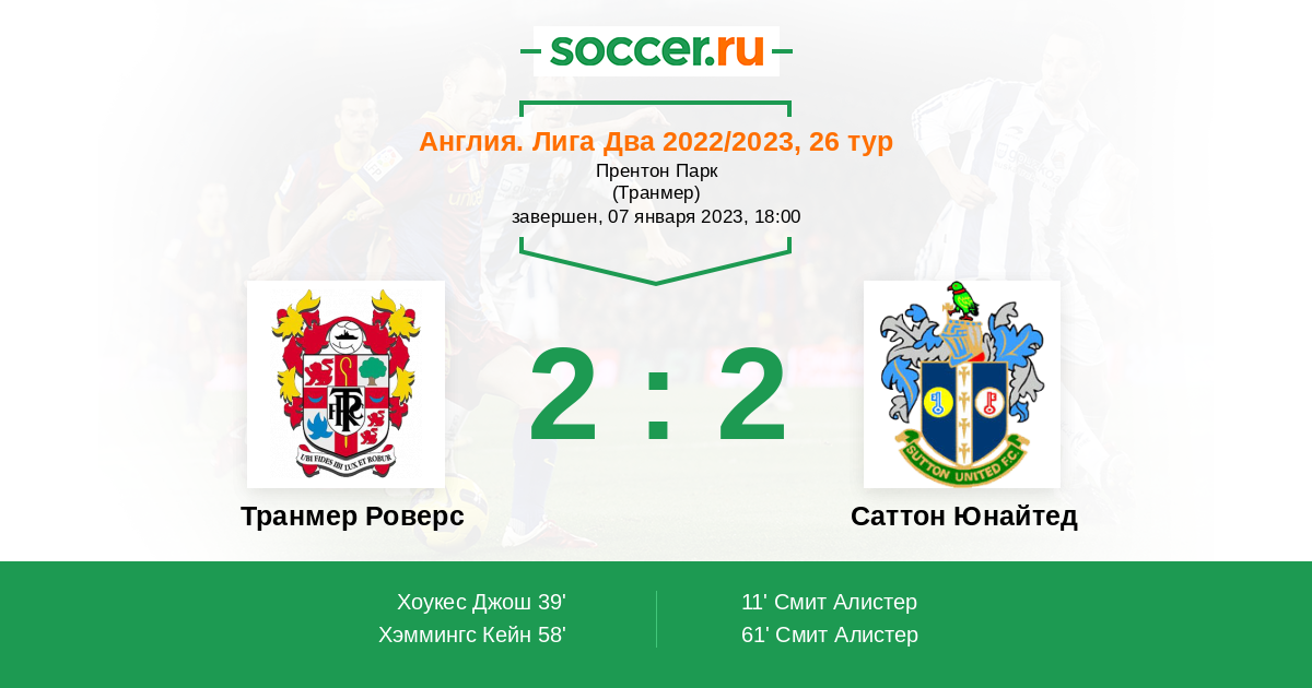 Протокол матча Транмер Роверс против Саттон Юнайтед