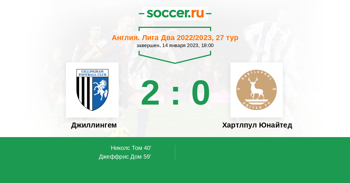 Протокол матча Джиллингем против Хартлпул Юнайтед