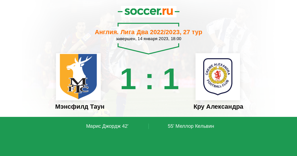 Протокол матча Мэнсфилд Таун против Кру Александра