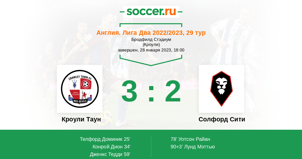 Протокол матча Кроули Таун против Солфорд Сити