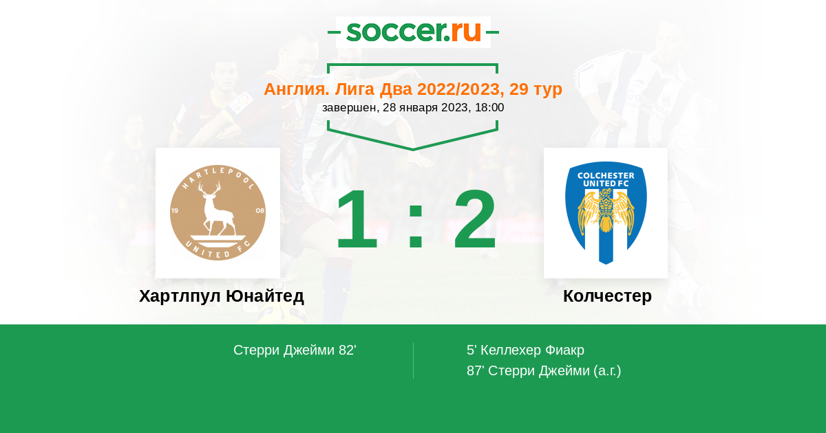 Протокол матча Хартлпул Юнайтед против Колчестер