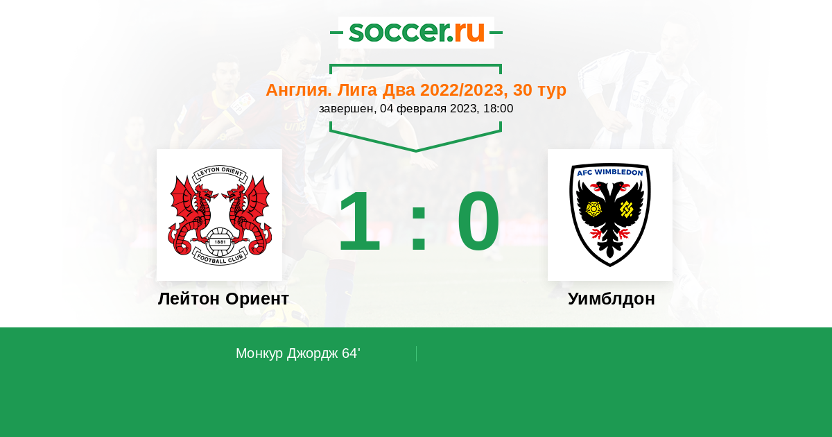 Протокол матча Лейтон Ориент против Уимблдон