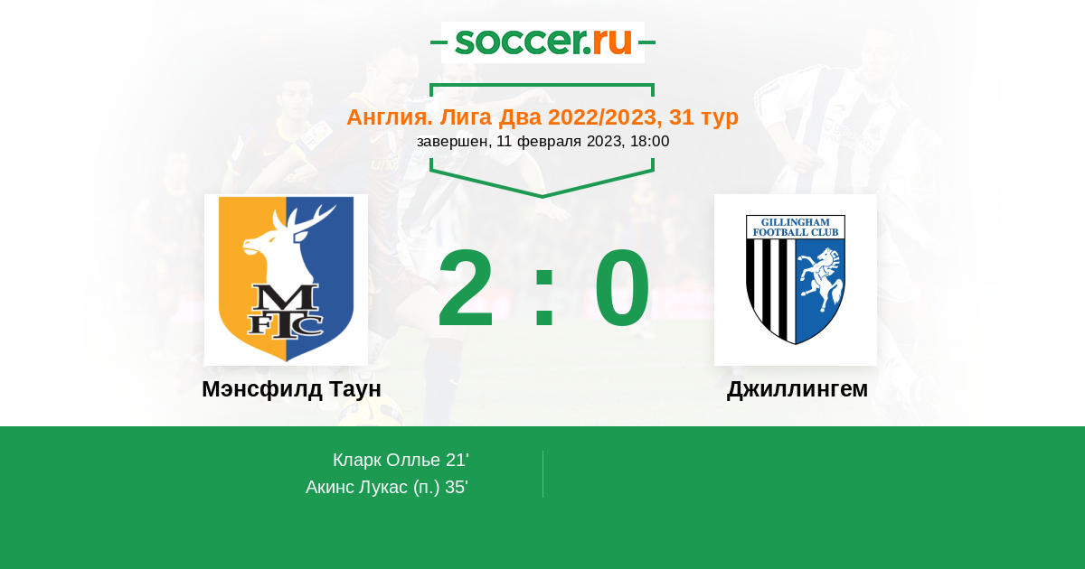 Протокол матча Мэнсфилд Таун против Джиллингем