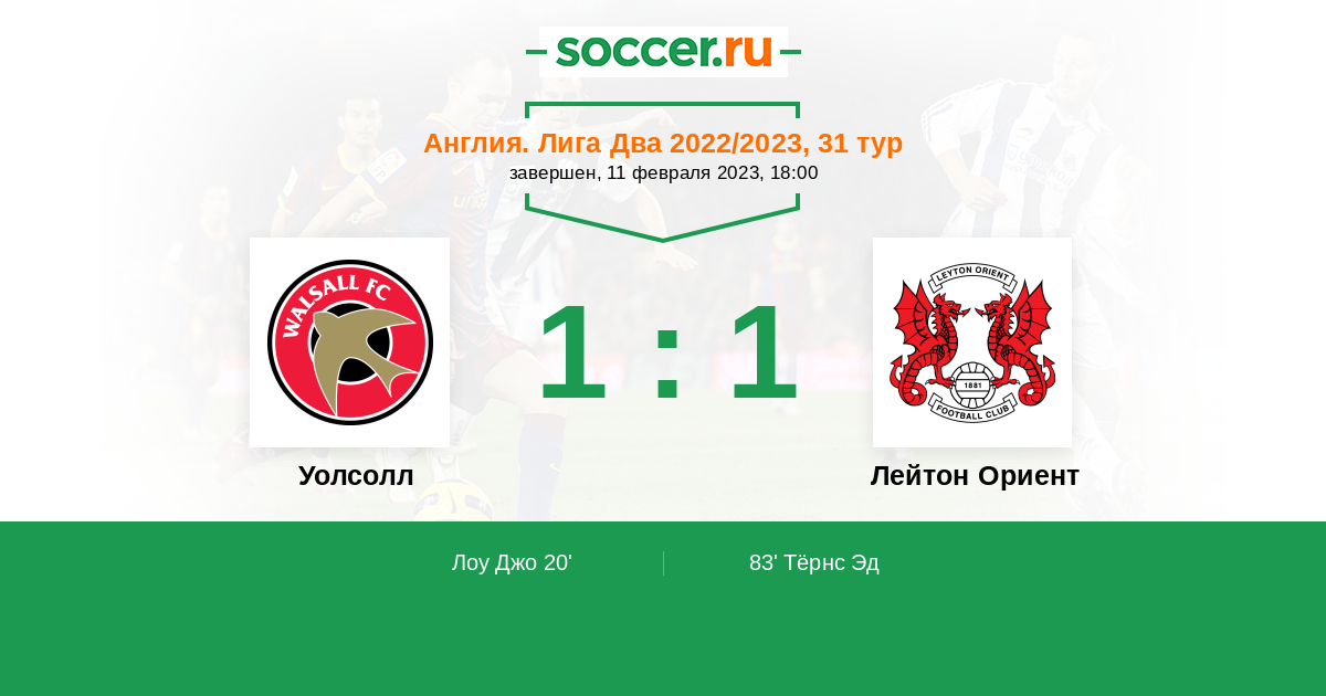 Протокол матча Уолсолл против Лейтон Ориент