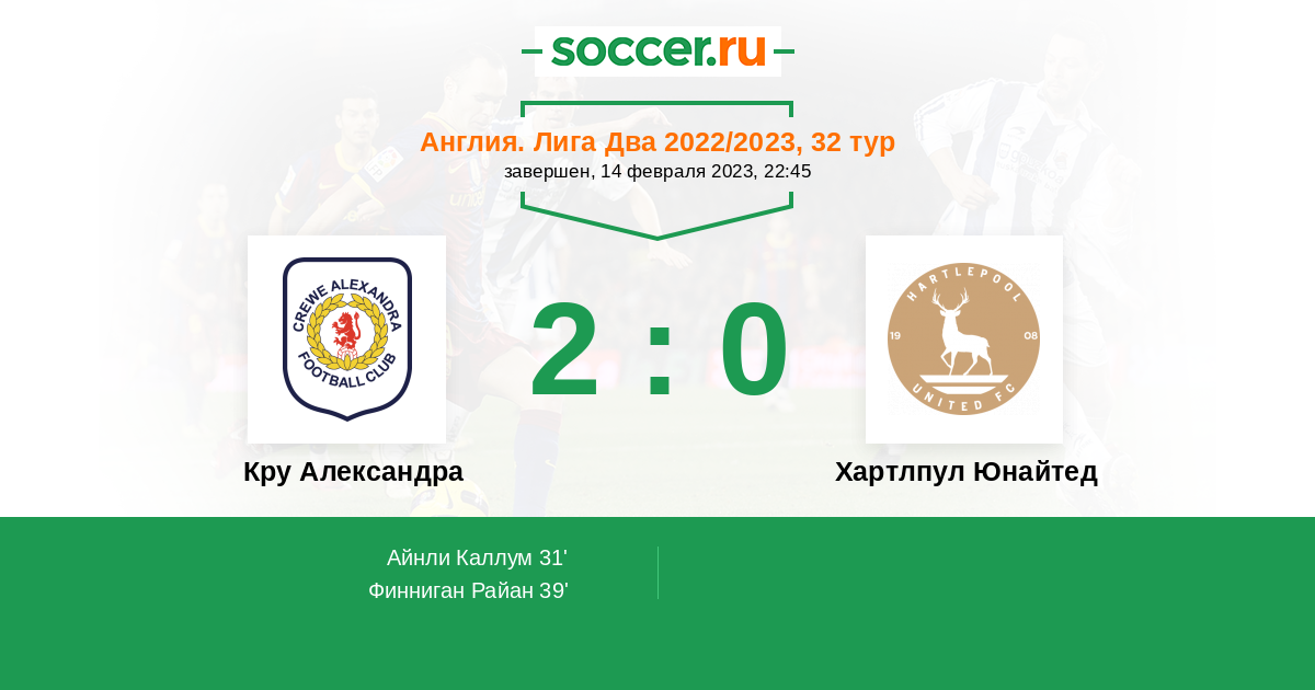 Протокол матча Кру Александра против Хартлпул Юнайтед