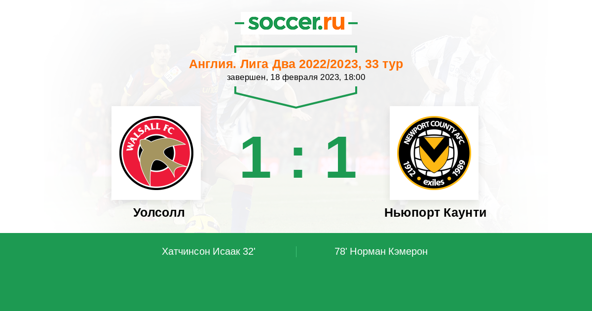 Протокол матча Уолсолл против Ньюпорт Каунти