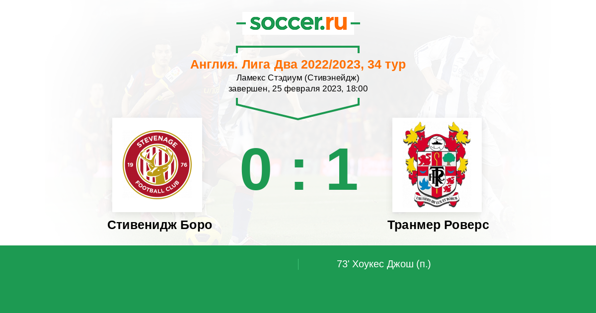 Протокол матча Стивенидж Боро против Транмер Роверс