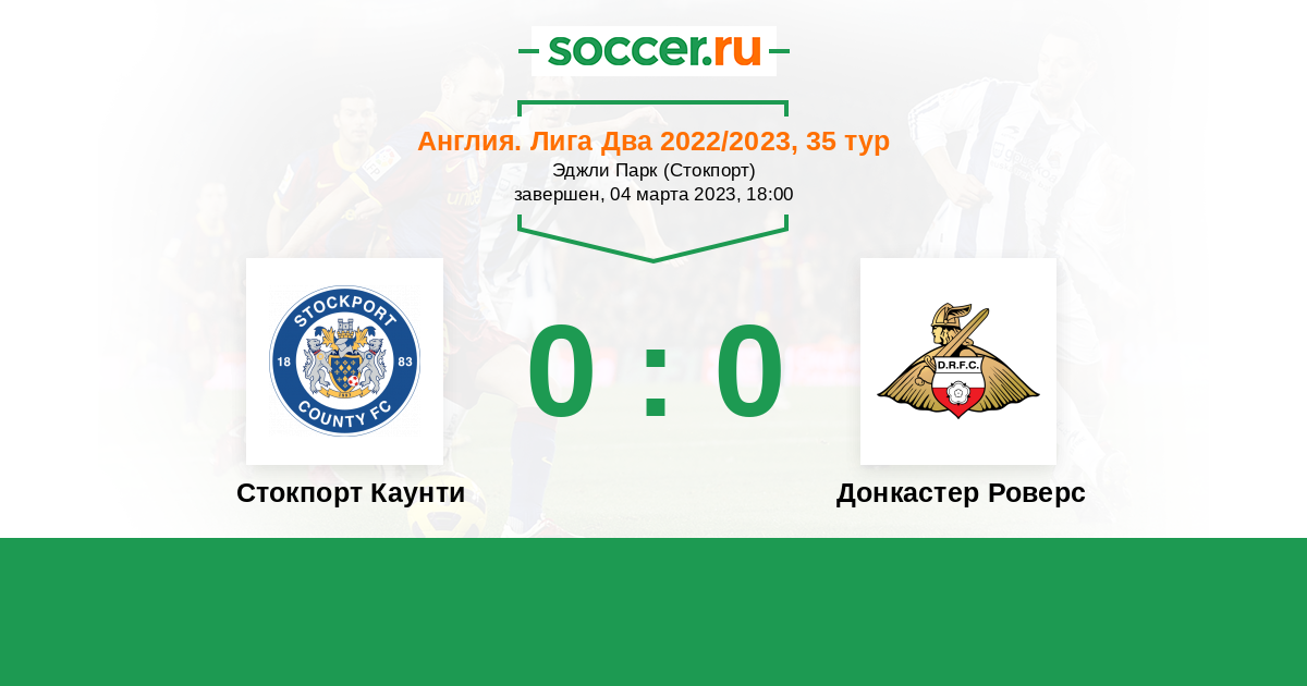 Протокол матча Стокпорт Каунти против Донкастер Роверс