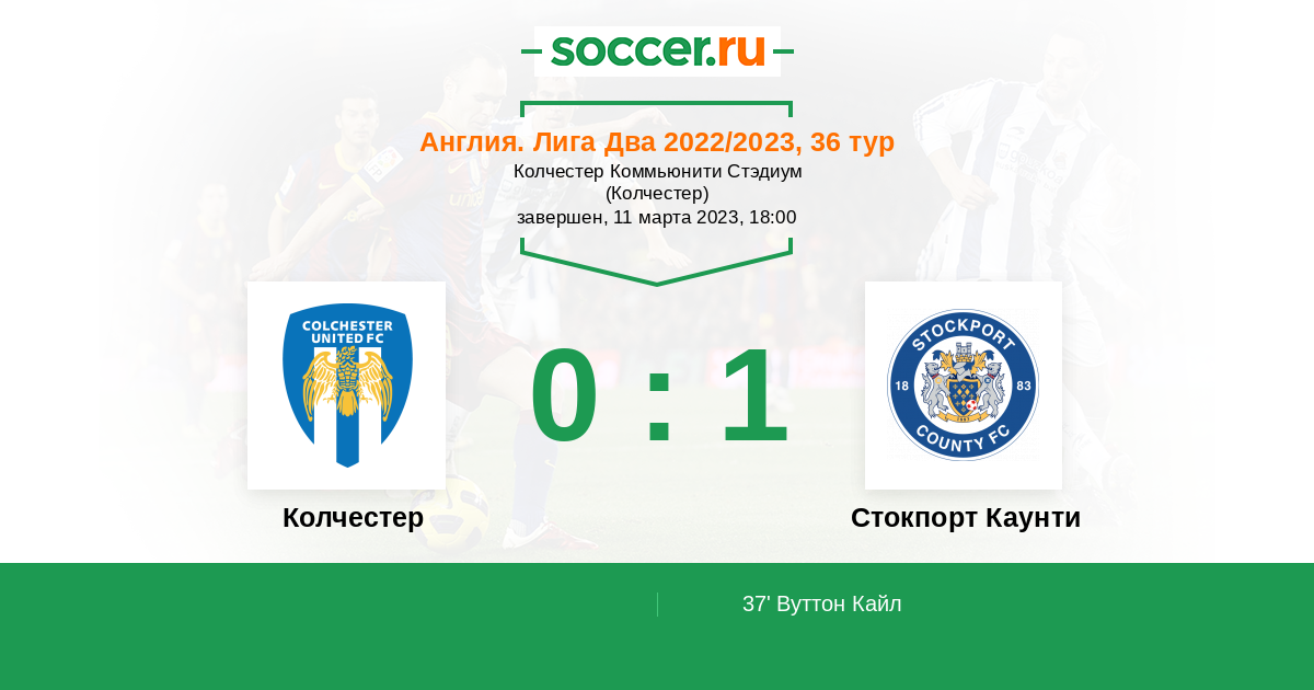 Протокол матча Колчестер против Стокпорт Каунти