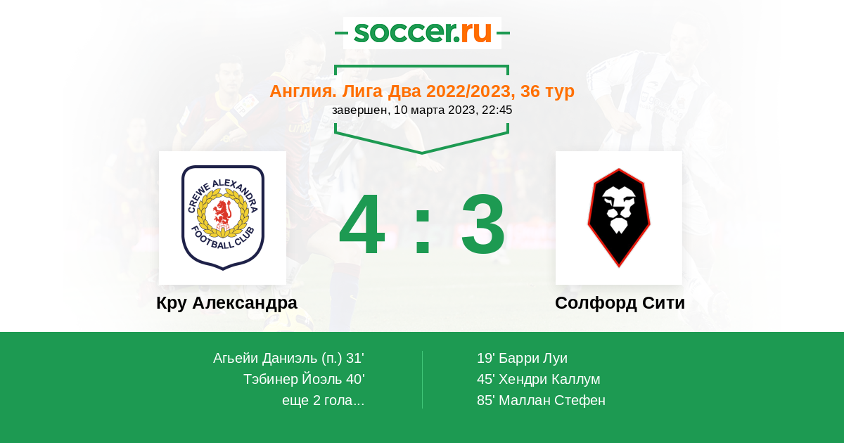 Протокол матча Кру Александра против Солфорд Сити