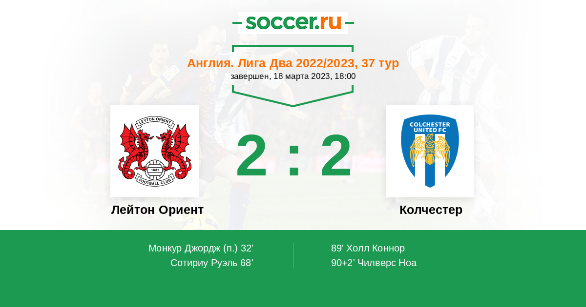 Протокол матча Лейтон Ориент против Колчестер
