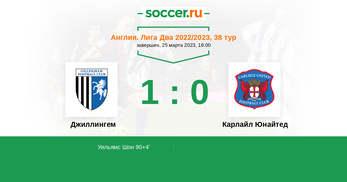 Протокол матча Джиллингем против Карлайл Юнайтед