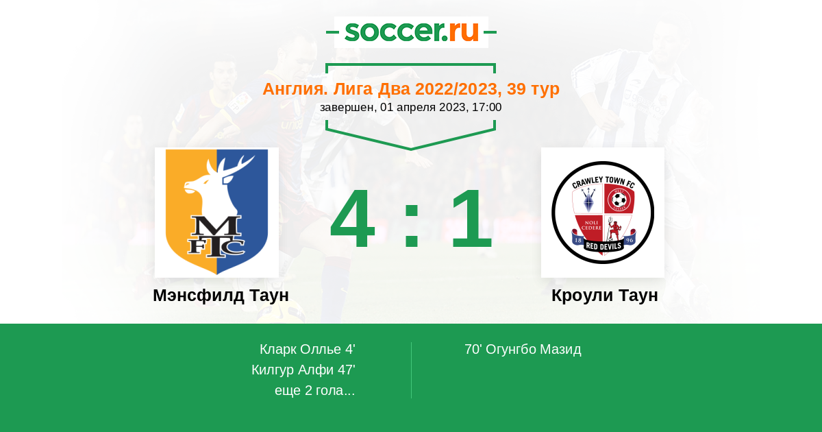 Протокол матча Мэнсфилд Таун против Кроули Таун