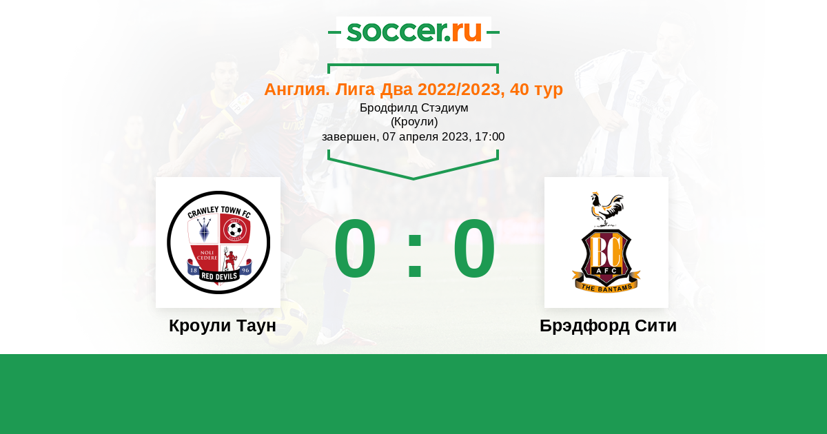 Протокол матча Кроули Таун против Брэдфорд Сити
