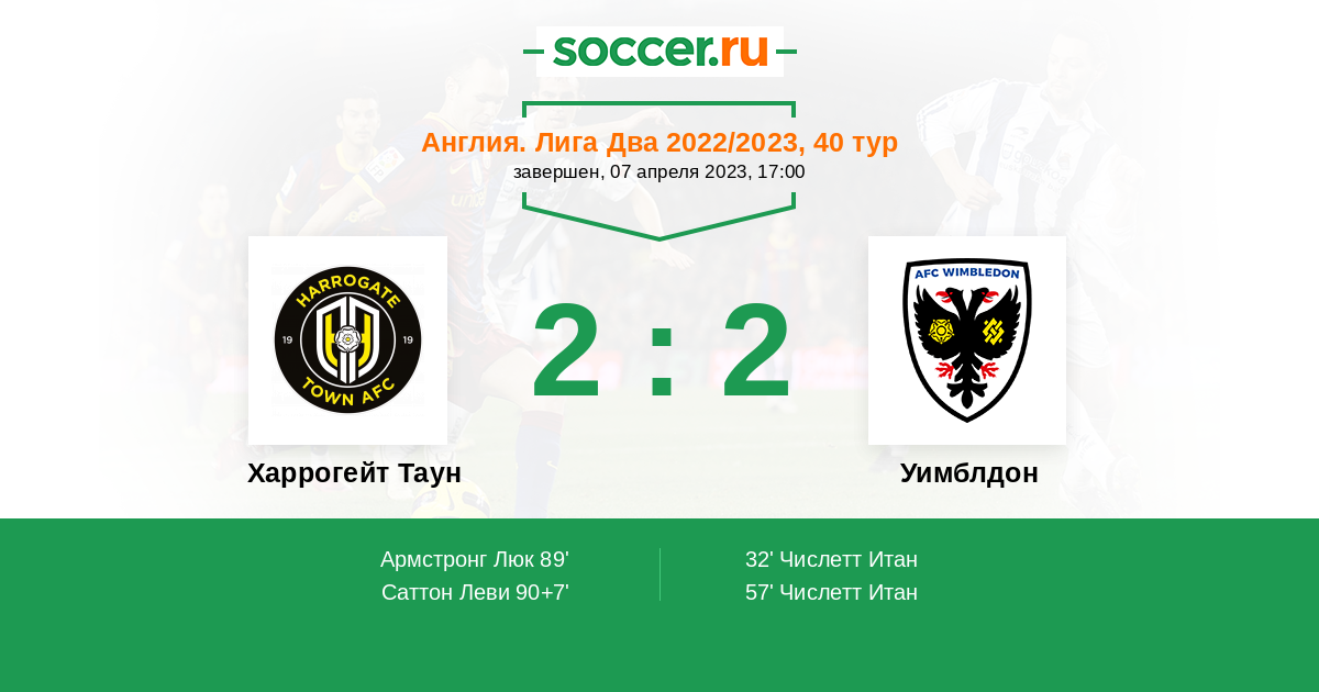 Протокол матча Харрогейт Таун против Уимблдон