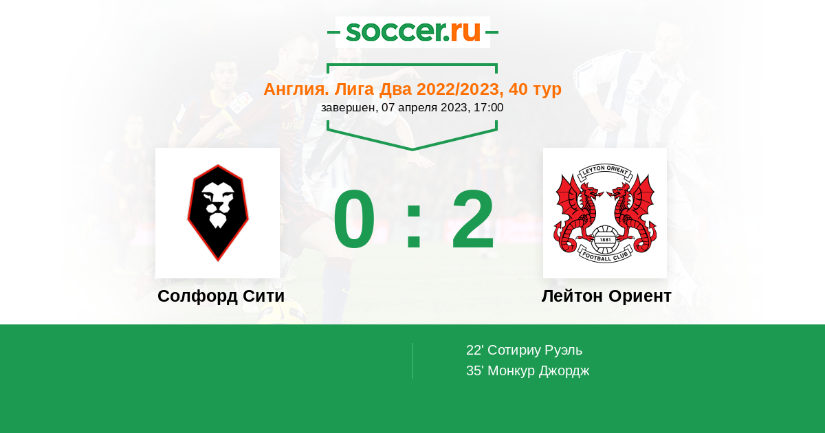Протокол матча Солфорд Сити против Лейтон Ориент