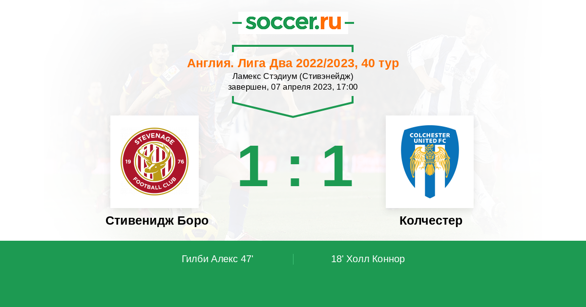 Протокол матча Стивенидж Боро против Колчестер