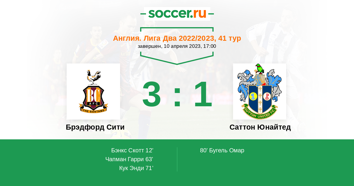 Протокол матча Брэдфорд Сити против Саттон Юнайтед