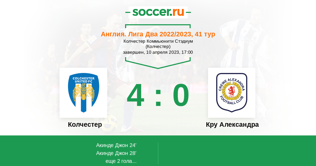 Протокол матча Колчестер против Кру Александра