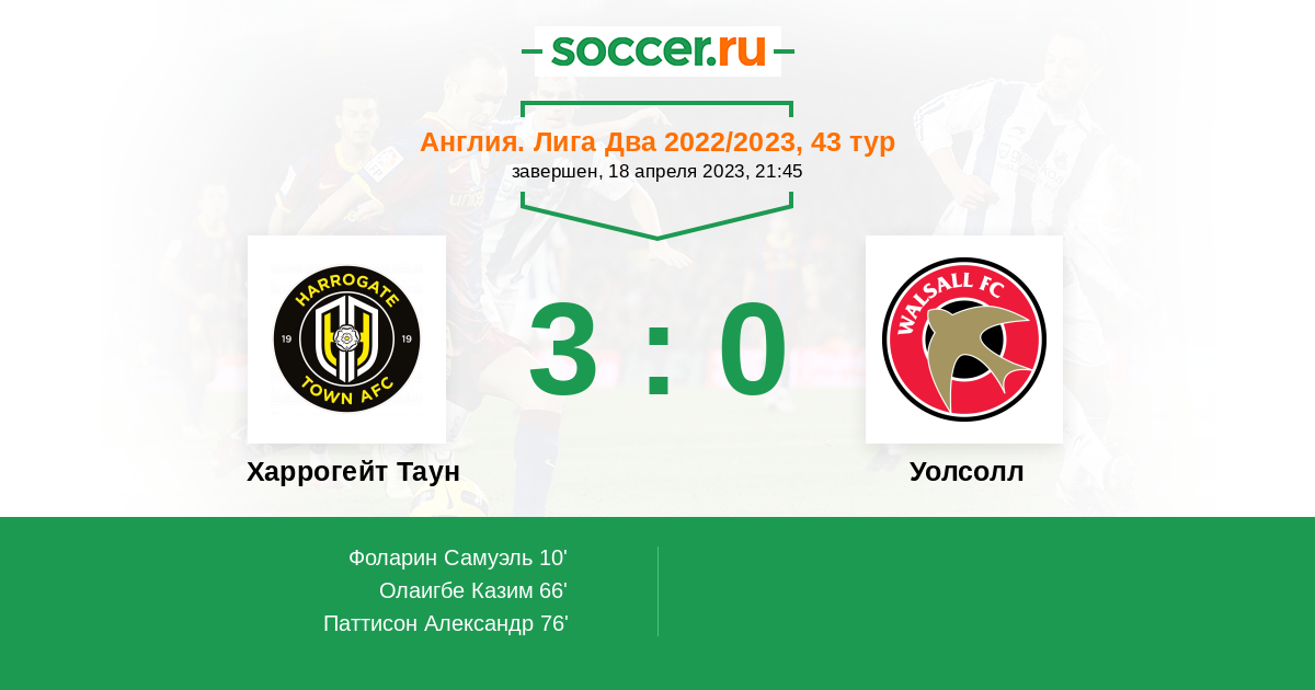 Протокол матча Харрогейт Таун против Уолсолл