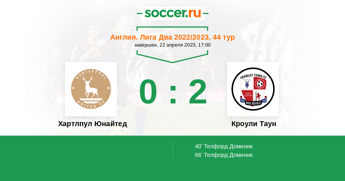 Протокол матча Хартлпул Юнайтед против Кроули Таун
