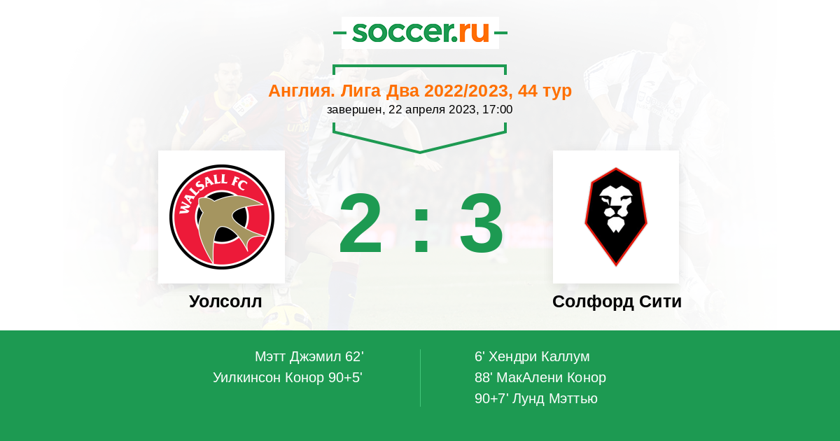 Протокол матча Уолсолл против Солфорд Сити
