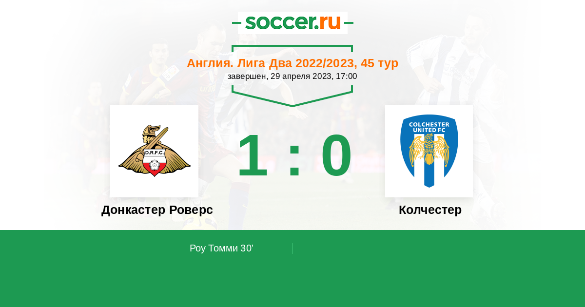 Протокол матча Донкастер Роверс против Колчестер