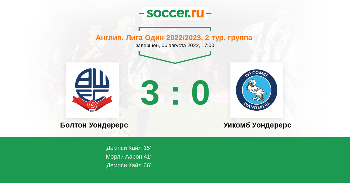 Протокол матча Болтон Уондерерс против Уикомб Уондерерс