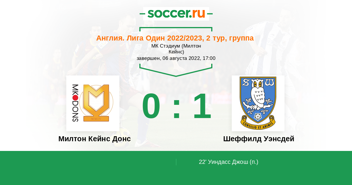 Протокол матча Милтон Кейнс Донс против Шеффилд Уэнсдей