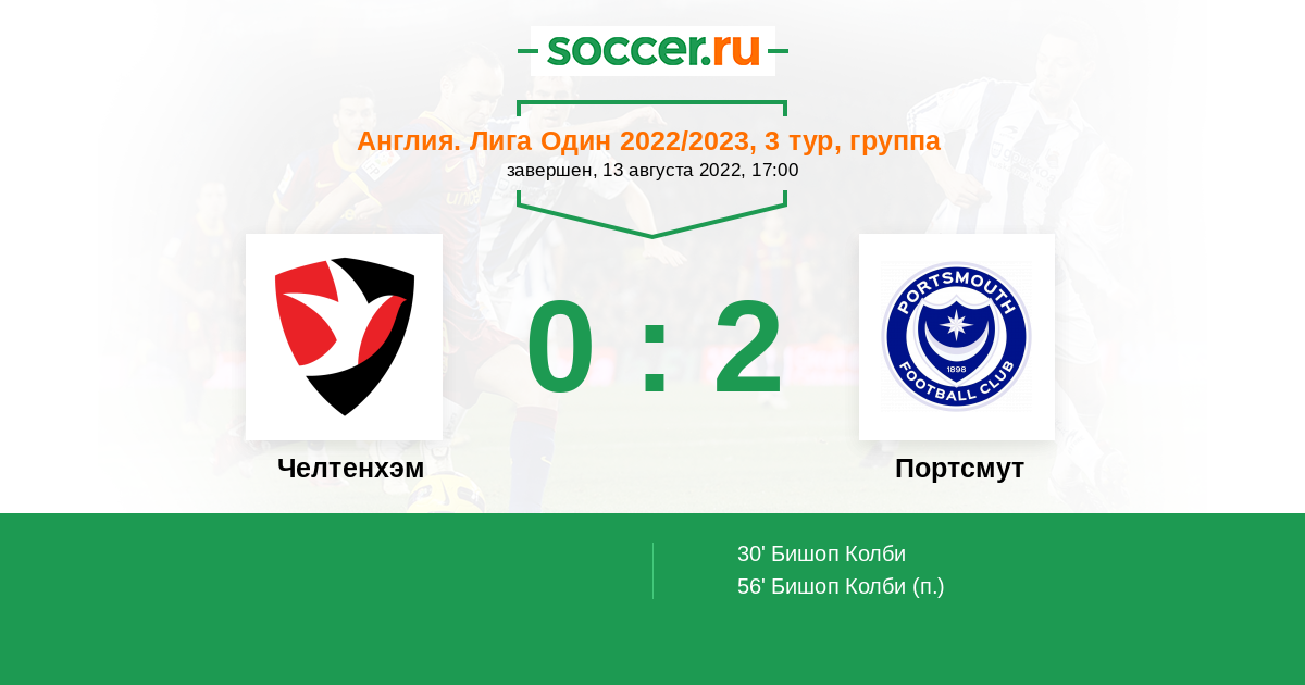 Протокол матча Челтенхэм против Портсмут