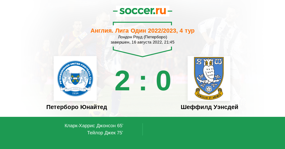 Протокол матча Петерборо Юнайтед против Шеффилд Уэнсдей